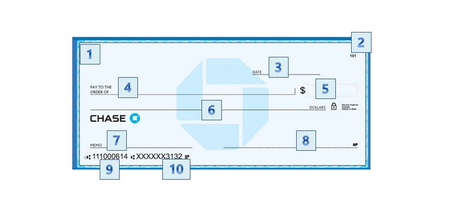 체이스 은행의 경우 저 위치에 계좌 소유주의 이름과 주소가 인쇄 되어 제공 됩니다. 이름과 주소가 모두 인쇄 되어 있기 때문에 별도로 기재 하지 않아도 되어 굉장히 편리한데요. 이렇게 이름이 인쇄되어 나오지 않는 경우 이름과 주소를 모두 써야 합니다. 금액이 큰 경우 수표를 받을 때 ID를 확인 하기도 하기 때문에, 은행에 등록된 주소와 신분증(ID)의 주소, 실제 거주하는 주소 3가지가 모두 일치할 수 있도록 늘 관리를 해 주는 것이 좋습니다.